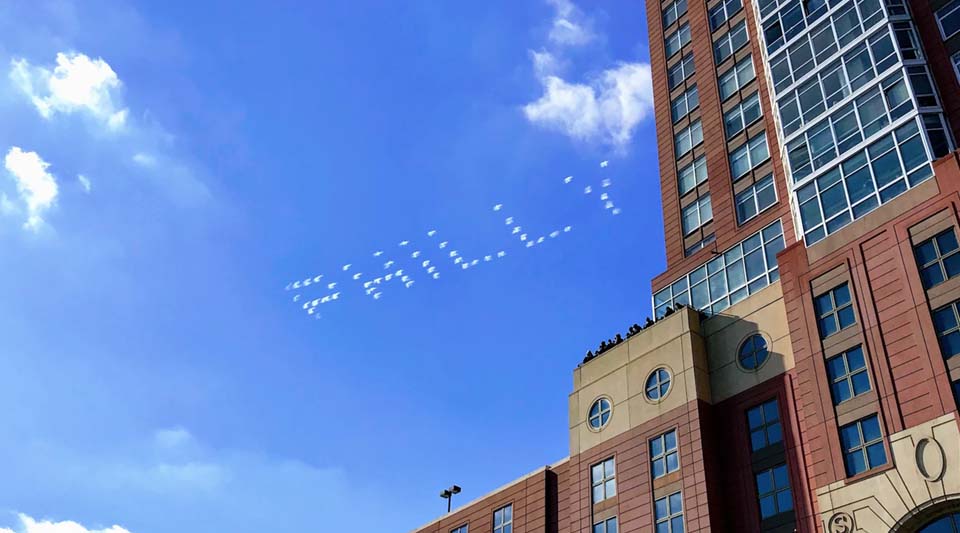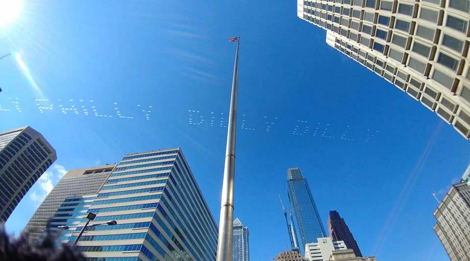 5 planes linked with a hotspot print messages in the sky within minutes. Sky Billboards stretch 5 miles across the sky and occupy 33 million square feet of space. Perfect for tailgating at sporting events, music festivals and beach campaigns.
